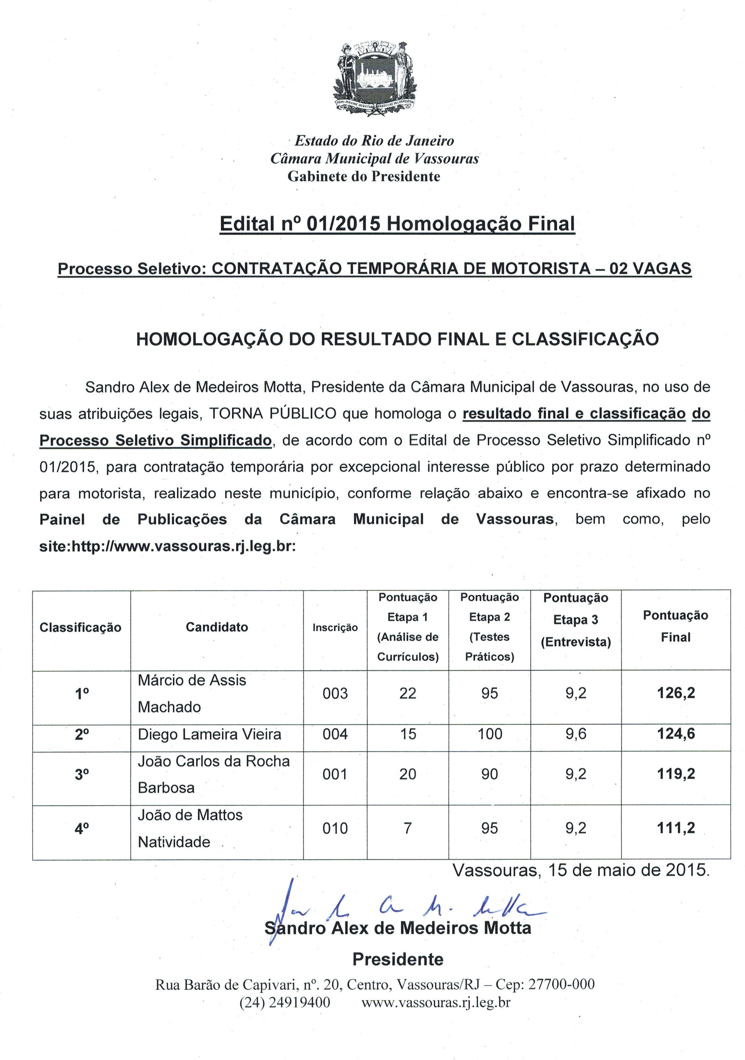 Em Sessão Solene realizada no dia 28 de novembro, a Câmara Municipal de Vassouras homenageou três atletas de nossa cidade, com a entrega da Medalha Carlos Alberto Delgado de Oliveira – Lilinho.
