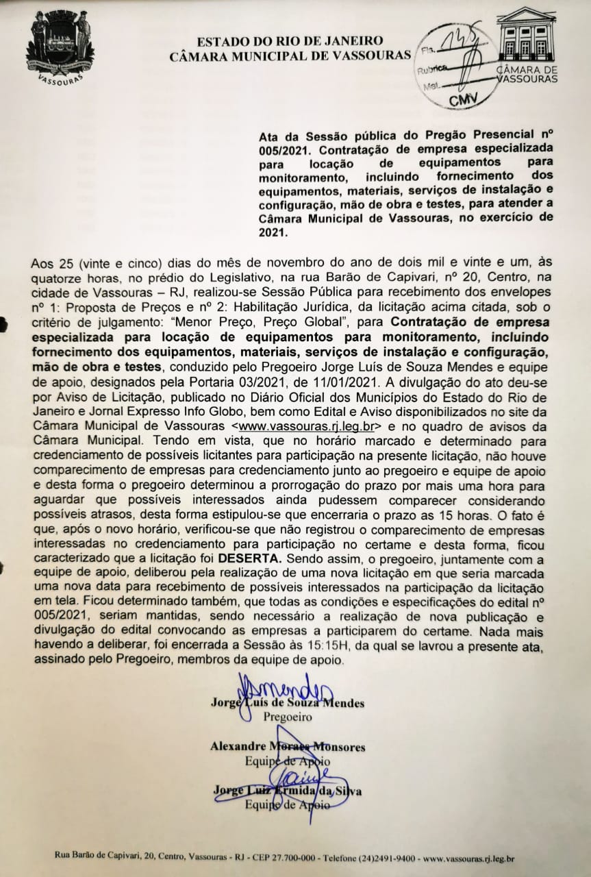 Ata Circunstanciada Licitação Deserta 25/11/2021 - PP 005/2021